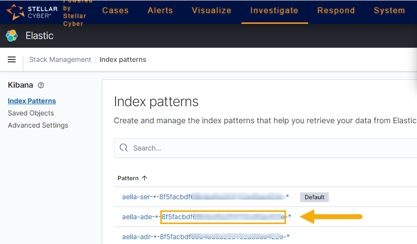 Keep in mind that when you enter index patterns to retrieve data from Stellar Cyber using Elasticsearch, you must use the following format: