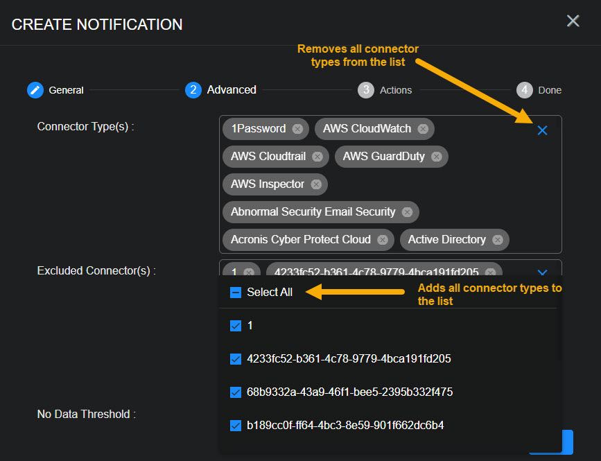 • Connector Monitoring – Get notifications when specified connectors haven't sent data over a given time interval so you can address issues in real time.