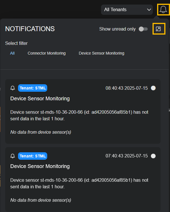 icon to open Notifications to show you the number of unread system notifications. Select the