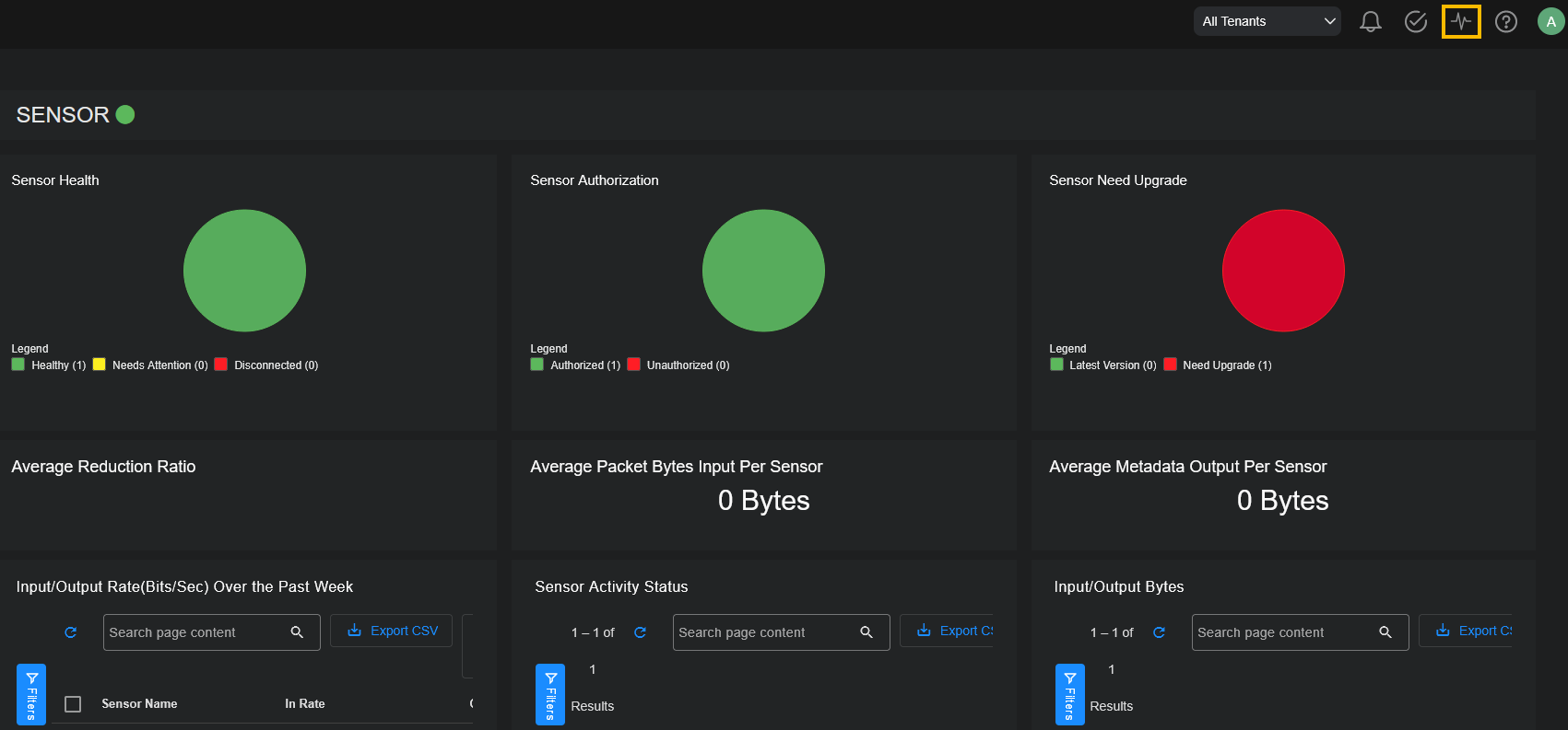 360 Panoramic View – Opens the Dashboards | Panoramic view with the selected friendly name, hostname, or IP address as the filter.