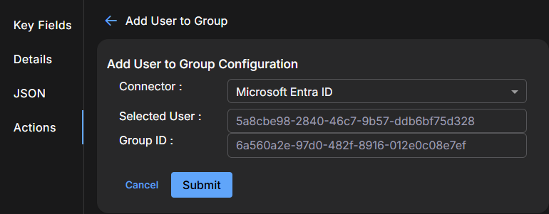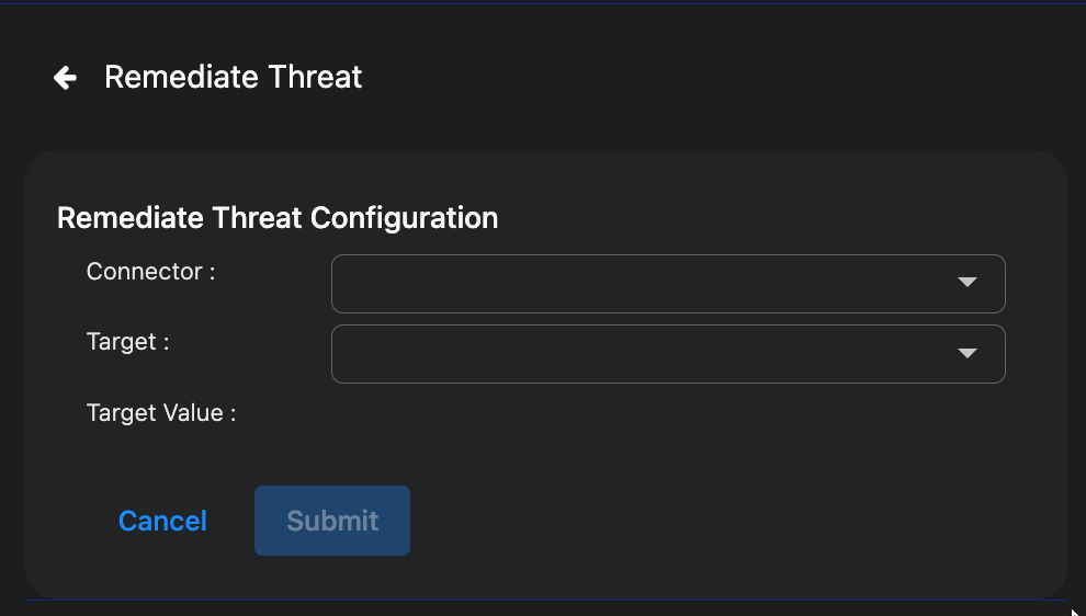 - Click Submit. A remediation signal on the target is immediately triggered from the SentinelOne service associated with your connector.