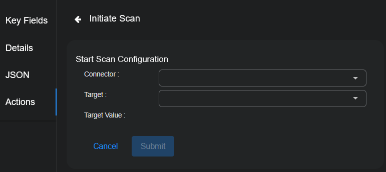 Click Submit. A vulnerability scan of your selection is triggered immediately from the service associated with your connector.
