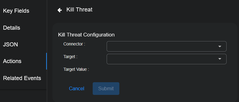- Click Submit. A kill threat signal on the target is immediately triggered from the SentinelOne service associated with your connector.