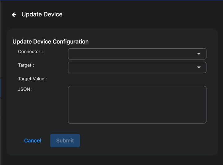 You can upload JSON to run actions on a device known to a Forescout connector: