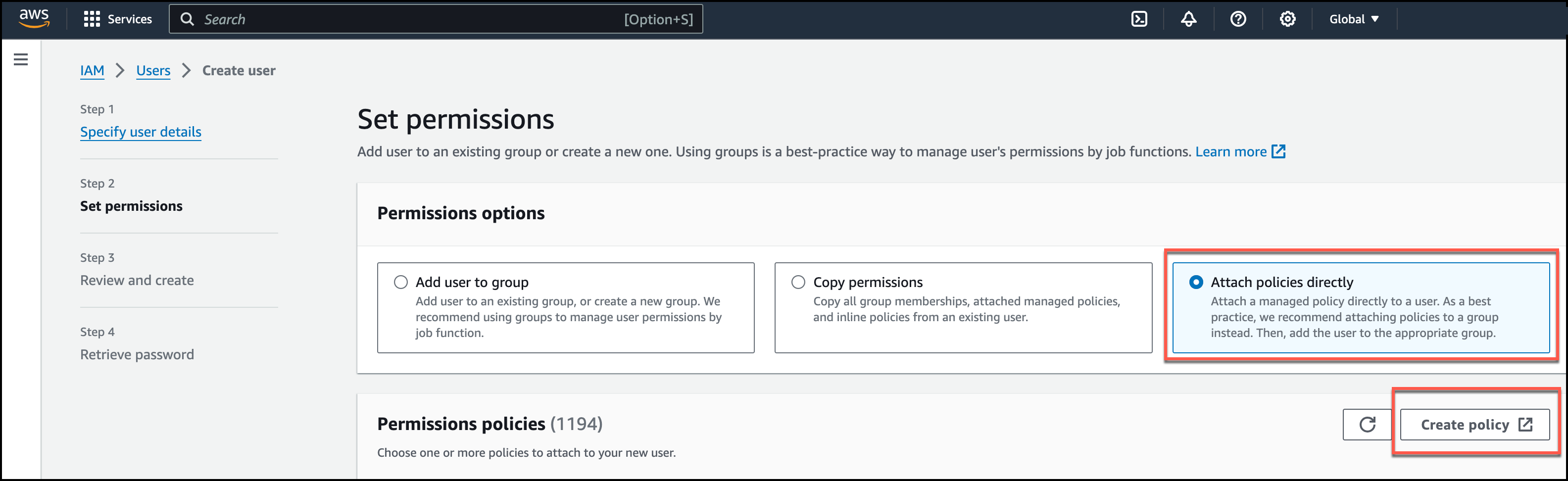 8. From the IAM navigation pane, choose Users and then choose Create user.