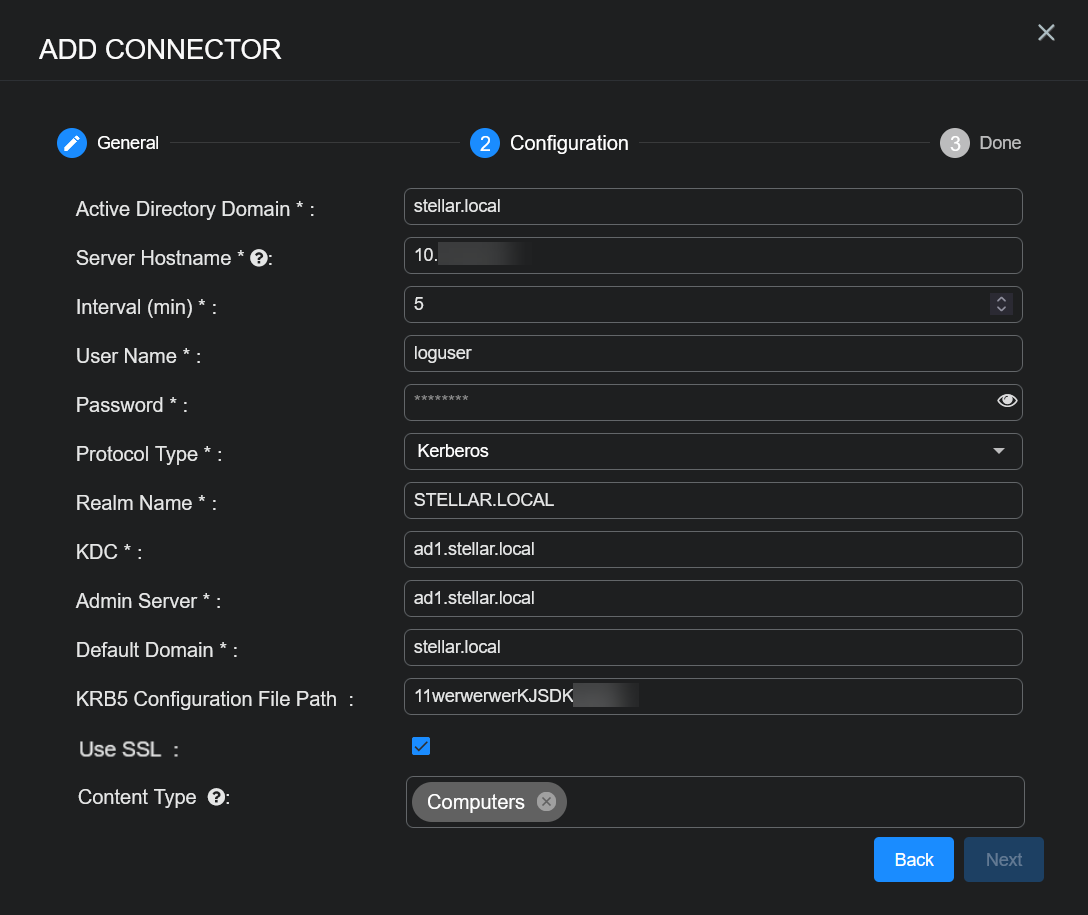 1. Enter the Realm Name. This is your Kerberos realm in uppercase, for example, STELLAR.LOCAL.