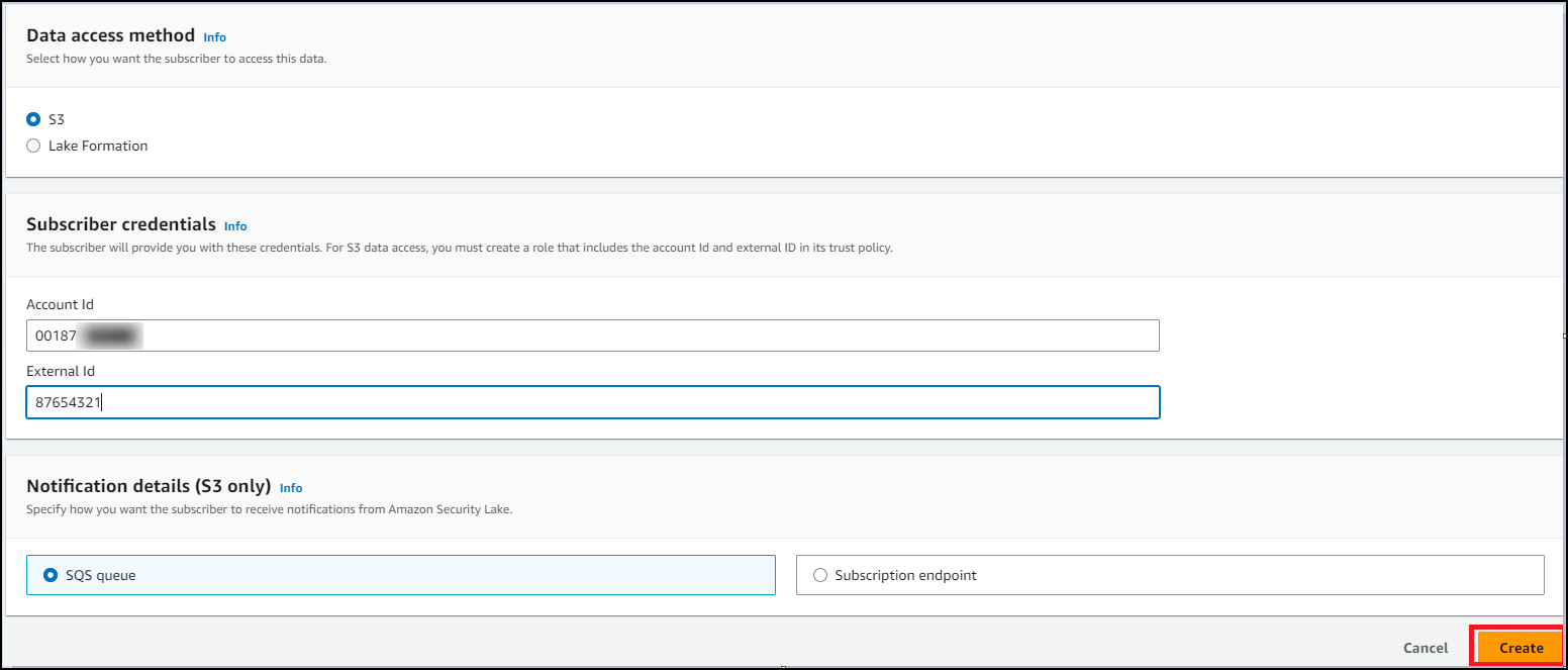 When you set up data access for the Amazon Security Lake subscriber in the Enabling Subscriber Data Access procedure, the SQS queue is automatically created.