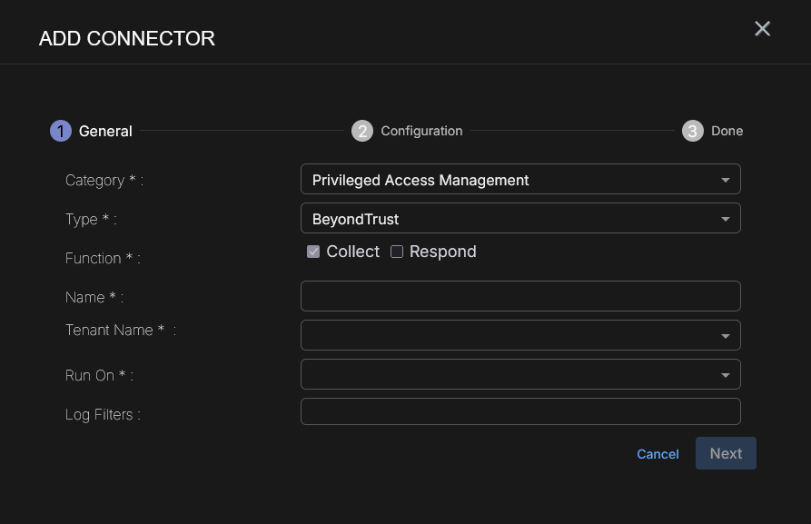 To add a BeyondTrust connector in Stellar Cyber: