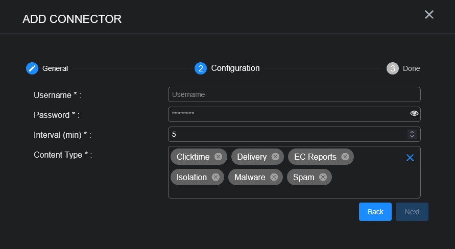 With the configuration information handy, you can add the Broadcom (Symantec) Email Security.cloud connector in Stellar Cyber: