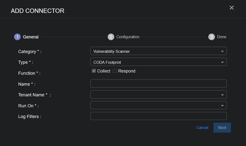 This connector allows Stellar Cyber to ingest logs from CODA Intelligence's CODA Footprint and add the records to the data lake. It integrates with the CODA Footprint API to get scan results and associated vulnerabilities.