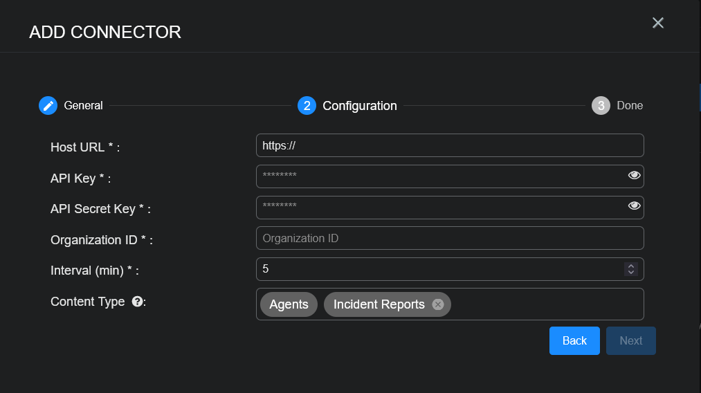 12. Enter the Host URL you noted above in Configuring Huntress Credentials.