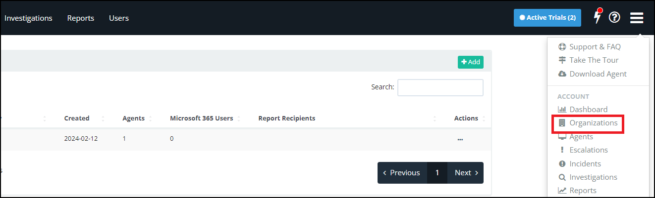 1. Log in as an administrative user to <your_account_subdomain>.huntress.io>.