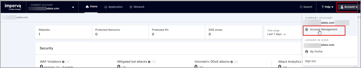 1. In the Cloud Security Console, click Account at the top right of the page and select Account Management.