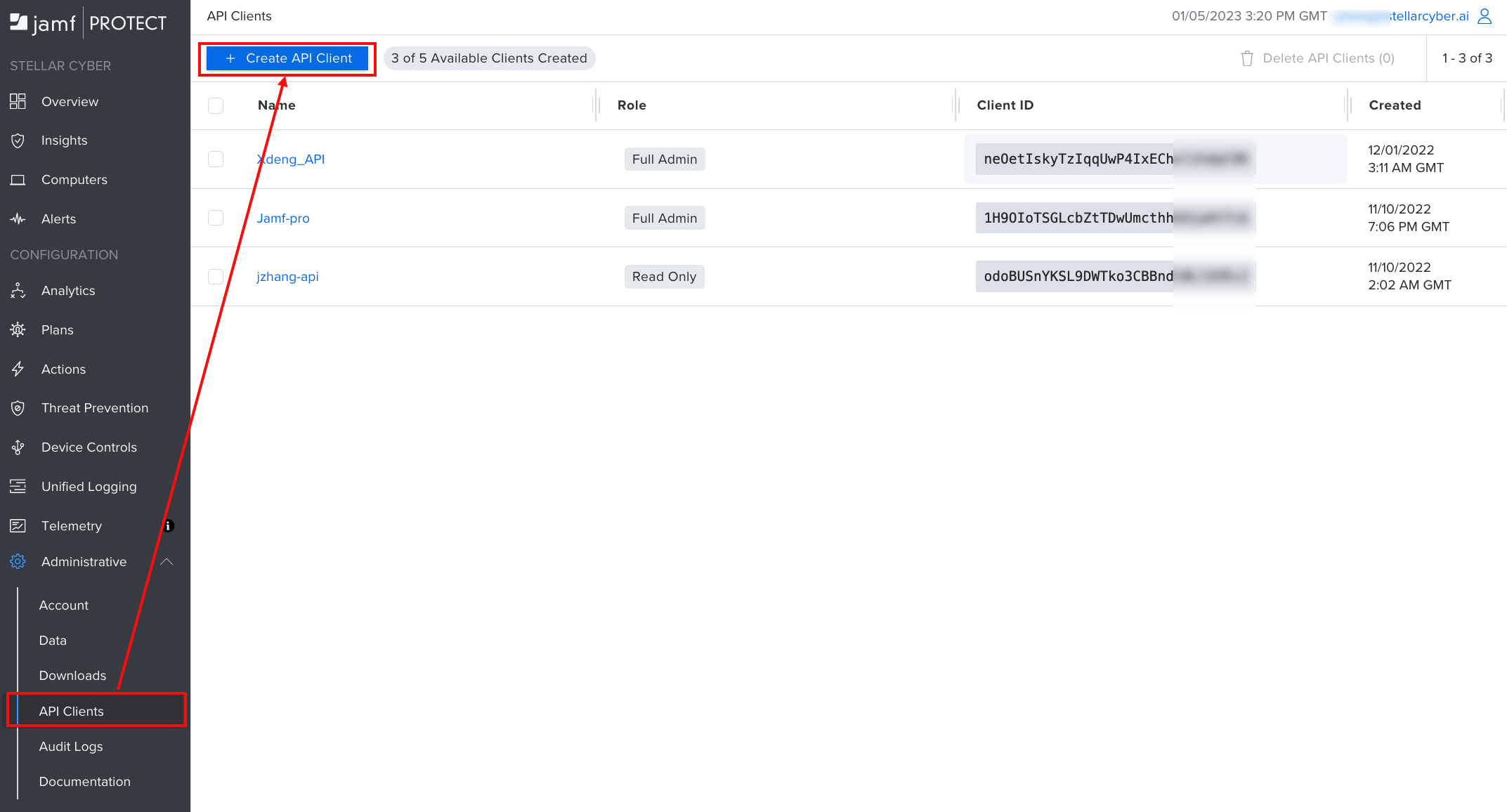2. Navigate to Administrative > API Clients.