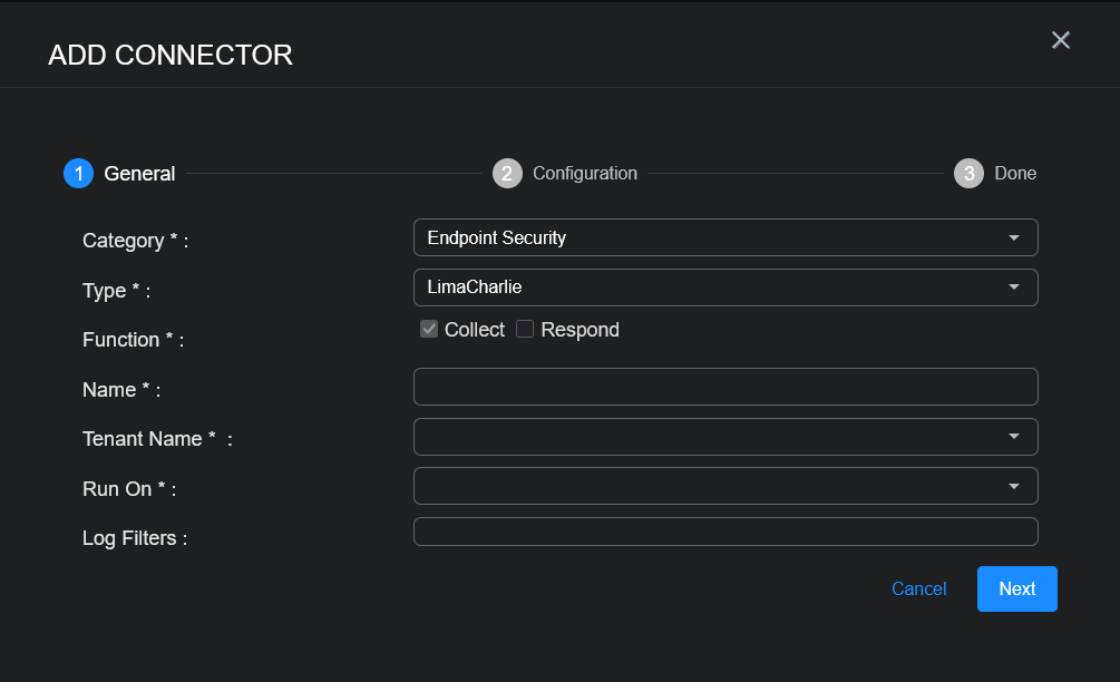 This connector allows Stellar Cyber to ingest logs from LimaCharlie and add the records to the data lake. It integrates with the LimaCharlie API to query for alerts.