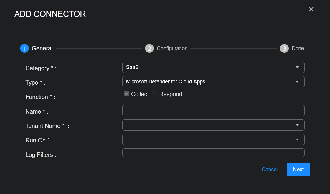 2. Add the connector in Stellar Cyber