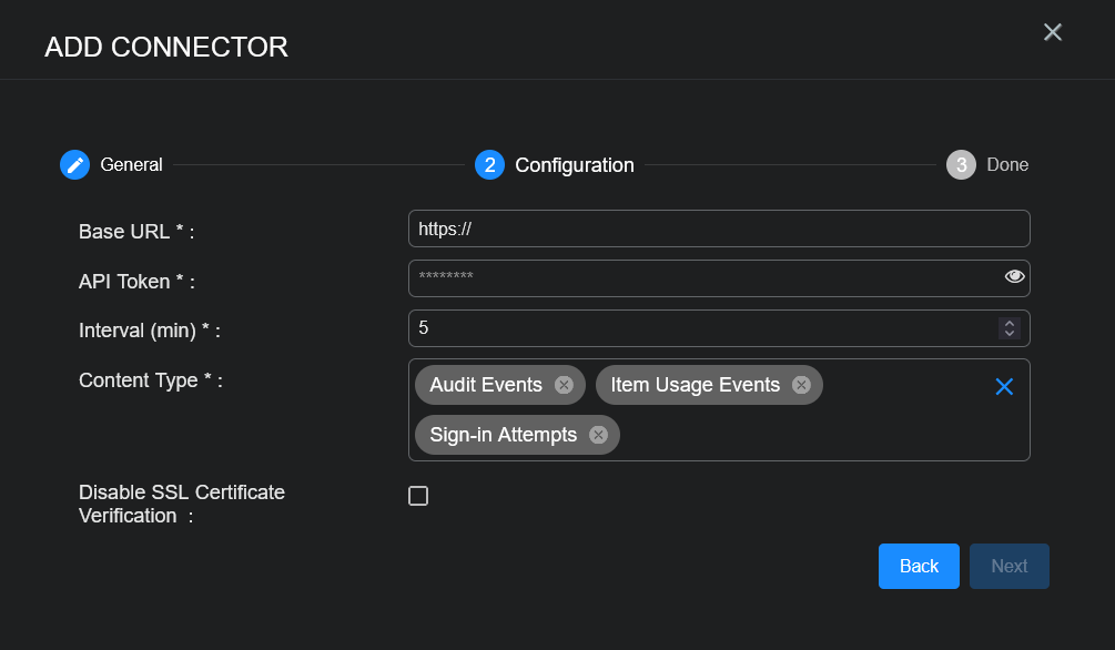 12. Enter the Base URL you noted above in Obtaining 1Password Credentials.
