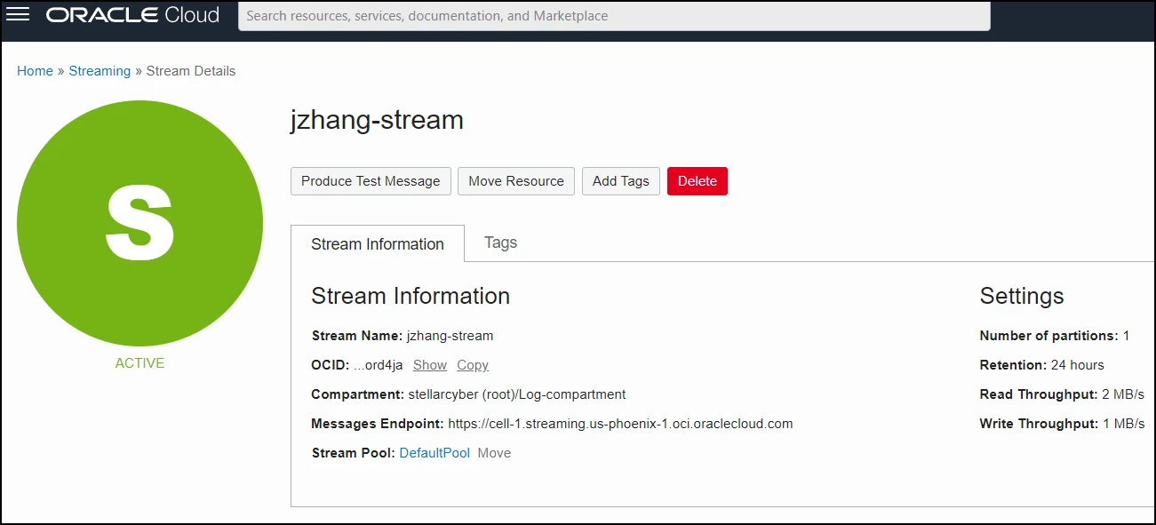 Username: stellarcyber/OracleIdentityCloudService/StreamUser/ocid1.streampool.oc1.phx.amaaaaaa57526pia6d4ng2pyndugjosjxxxxxxxxx