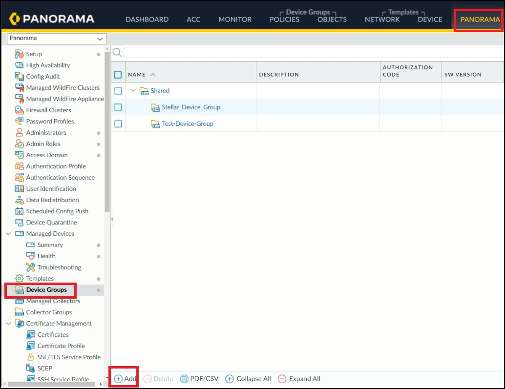 1. Under Panorama, select Device Groups.
