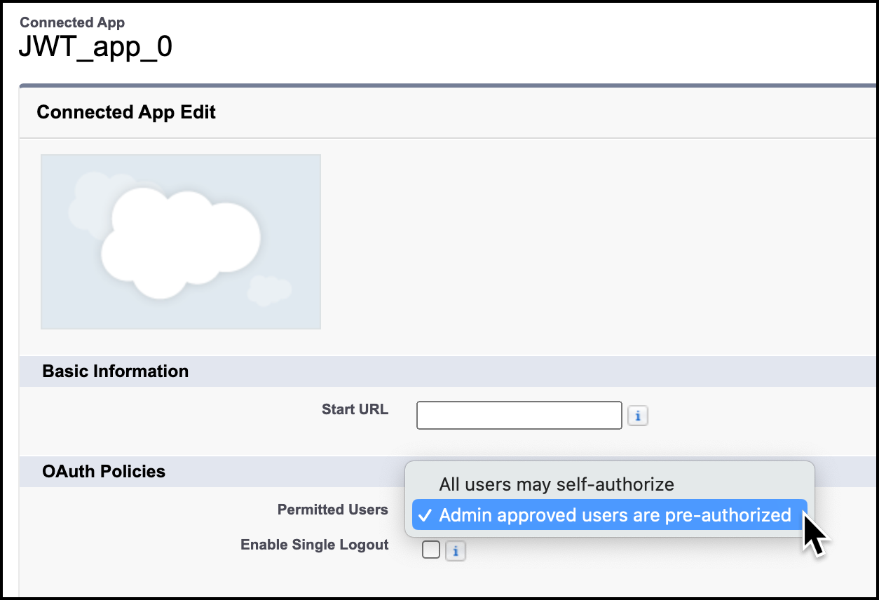 12. Under OAuth Policies, for Permitted Users, choose Admin approved users are pre-authorized.
