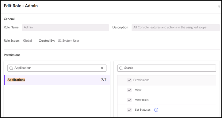 This content type needs the Applications View Risks permission. See Obtaining SentinelOne Credentials for details.