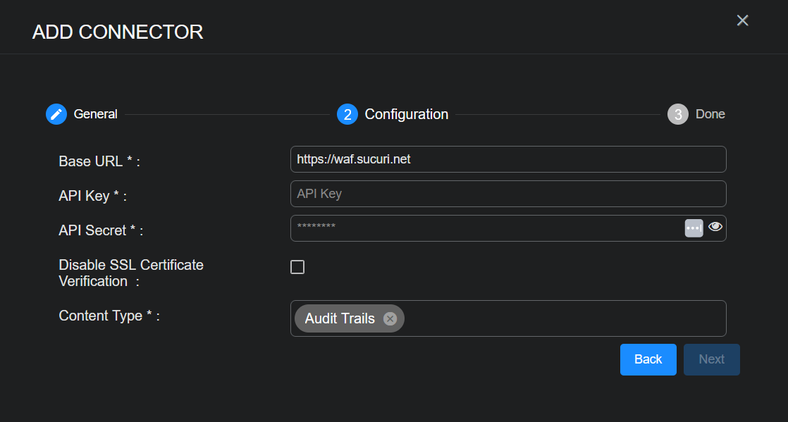 Configuring Sucuri Security Connectors