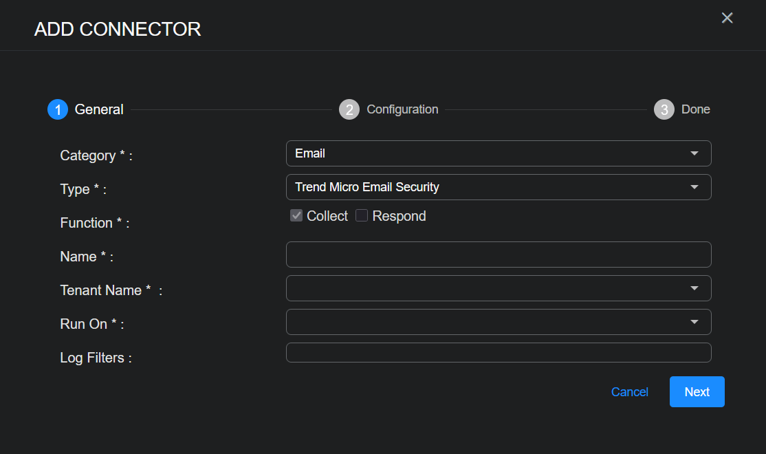 To add a Trend Micro Email Security connector in Stellar Cyber: