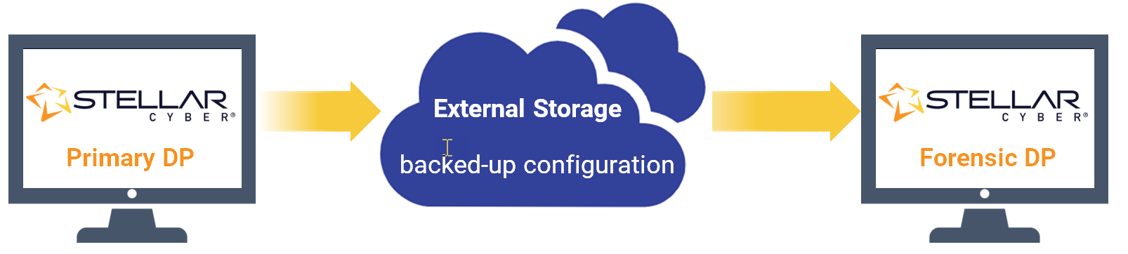 Primary DP: We will configure the dedicated forensic DP with the exact same Snapshot Backup/Restore external storage as that used by the primary DP. This way, we can import the configuration to the dedicated forensic DP directly from the backup written to external storage by the primary DP, as summarized in the figure below: