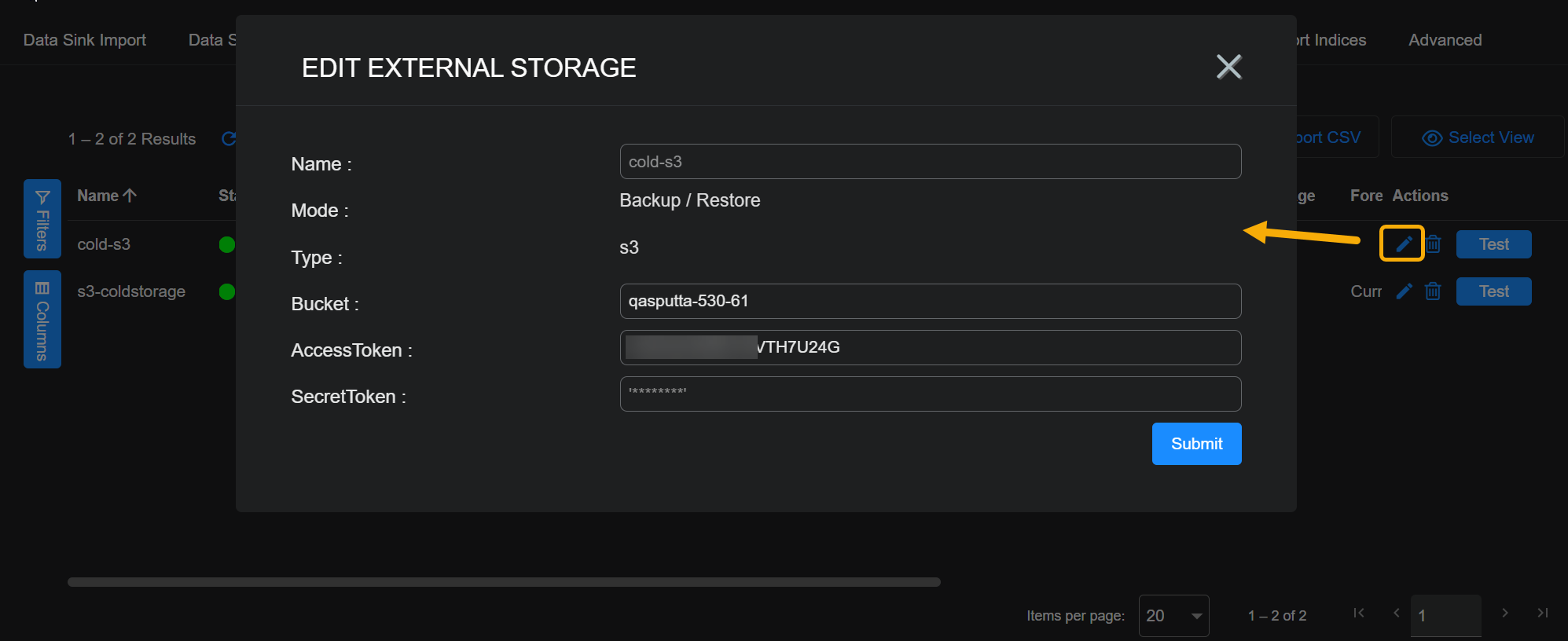 Locate the entry for the destination you identified previously and click its Edit button to see its settings. The figure below shows the settings for the cold-s3destination we identified previously.