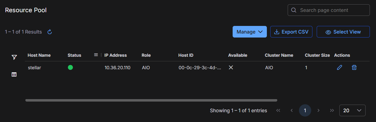 You manage Data Processor resources in the System | DATA MANAGEMENT | Resources page. A Resource in Stellar Cyber refers to a host system on which one of the Stellar Cyber data processor components runs.