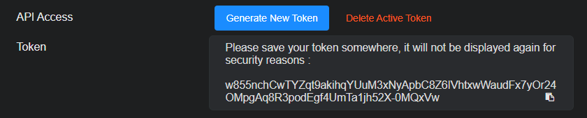 Use the Copy button to copy your API key now and store it somewhere safe. For security reasons, you will not be able to retrieve the key from within Stellar Cyber later on.