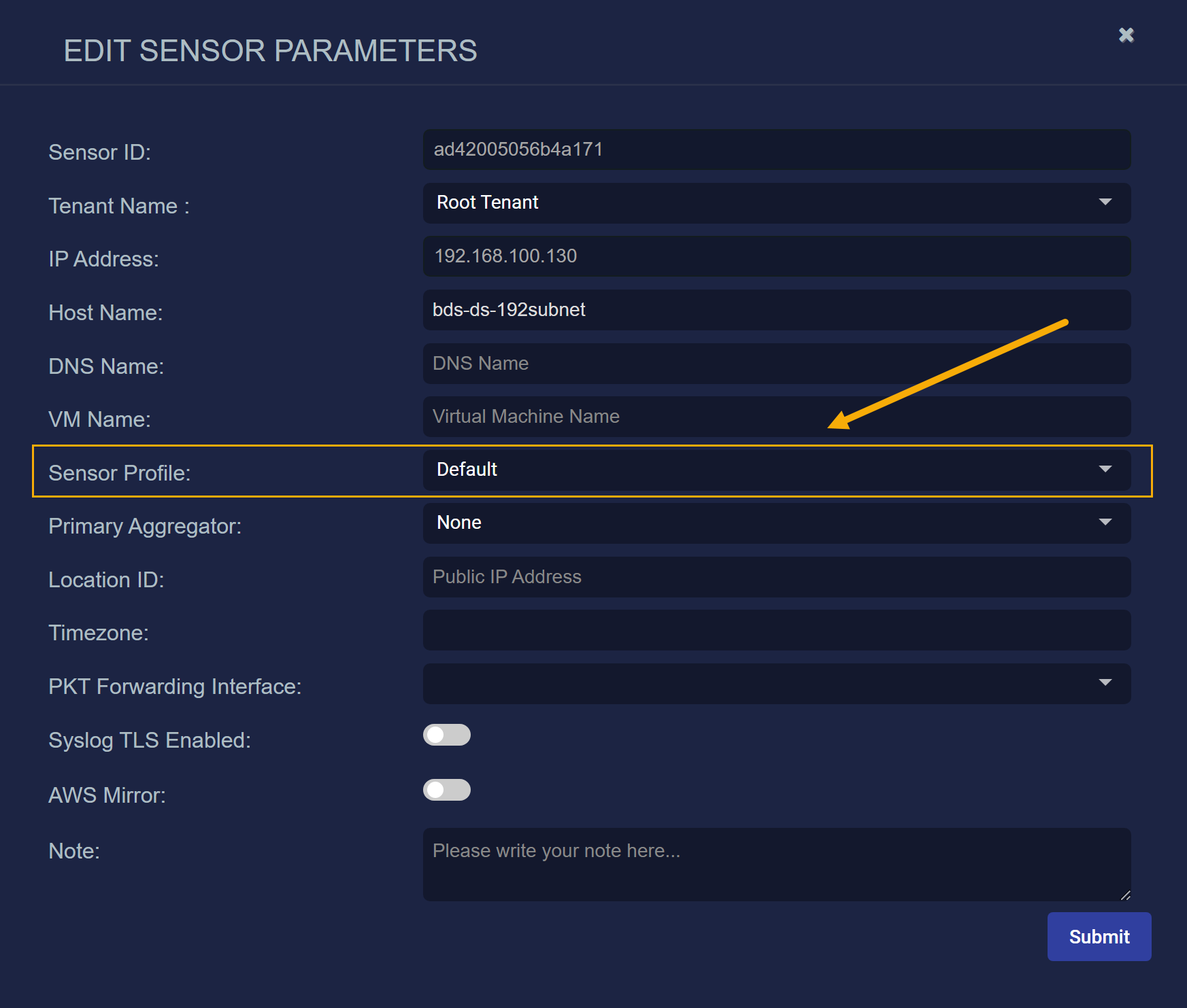Use the Sensor Profile dropdown to assign the Modular Sensor profile with the Aggregator feature enabled that you configured in the previous procedure.
