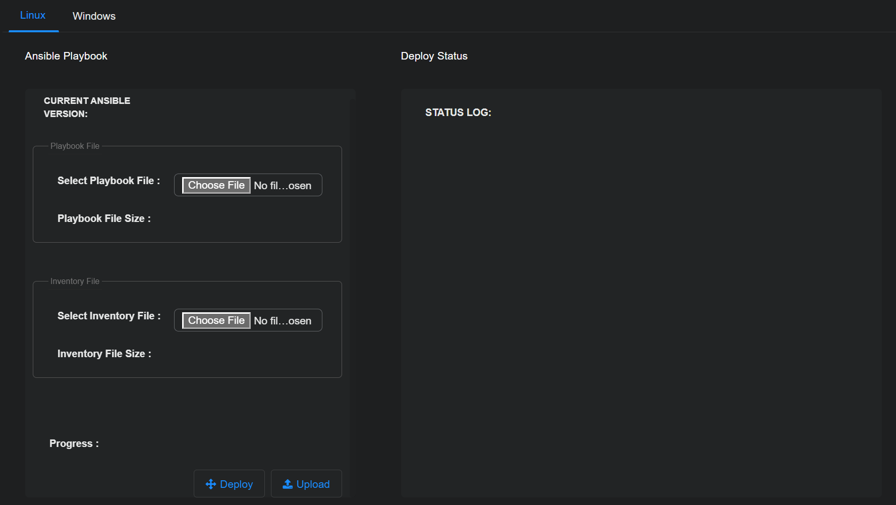 Deploy – Select to initiate execution of the Ansible playbook.