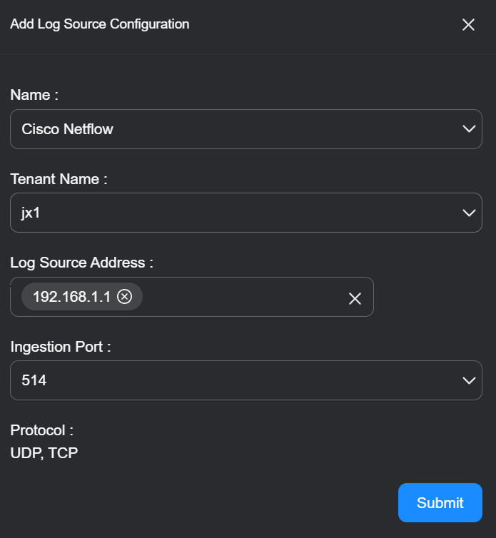 5. Use the Log Source Address field to supply the IP addresses for this log source type.