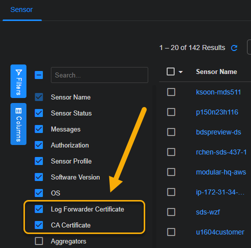 Refresh the Sensor table to see the results. If you do not see the Upgrade Result column: