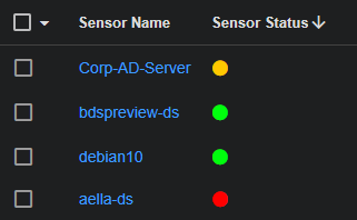 Name – The host name where the sensor is located. This value may not be unique within the system since it depends on the configuration done on the system where the sensor runs. Click the name to see sensor details.
