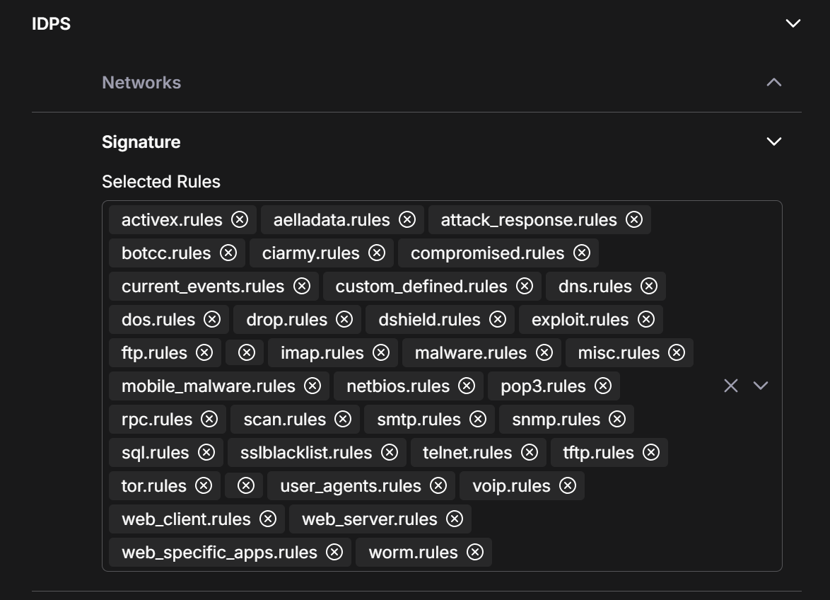 Stellar Cyber recommends that you establish a naming convention, so you can understand the intent of each profile by looking at the name. This field can only contain alphanumeric characters, underscores, spaces, and dashes.