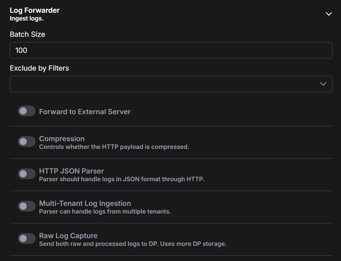 With Network Traffic disabled, the sensor operates as a Log Forwarder. None of the other features in the Network tab are available for selection or configuration. In addition: