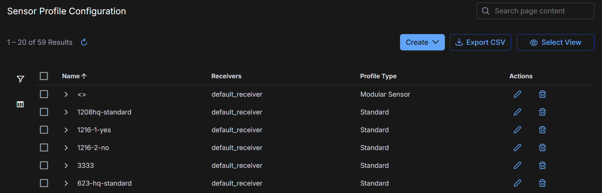 1. Select System | DATA SOURCE MANAGEMENT | Sensors | Sensor Profiles.