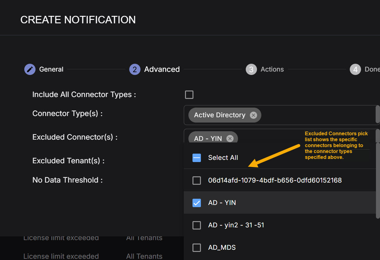 Use the Excluded Tenant(s) dropdown to exclude specified tenants from notifications for this rule.