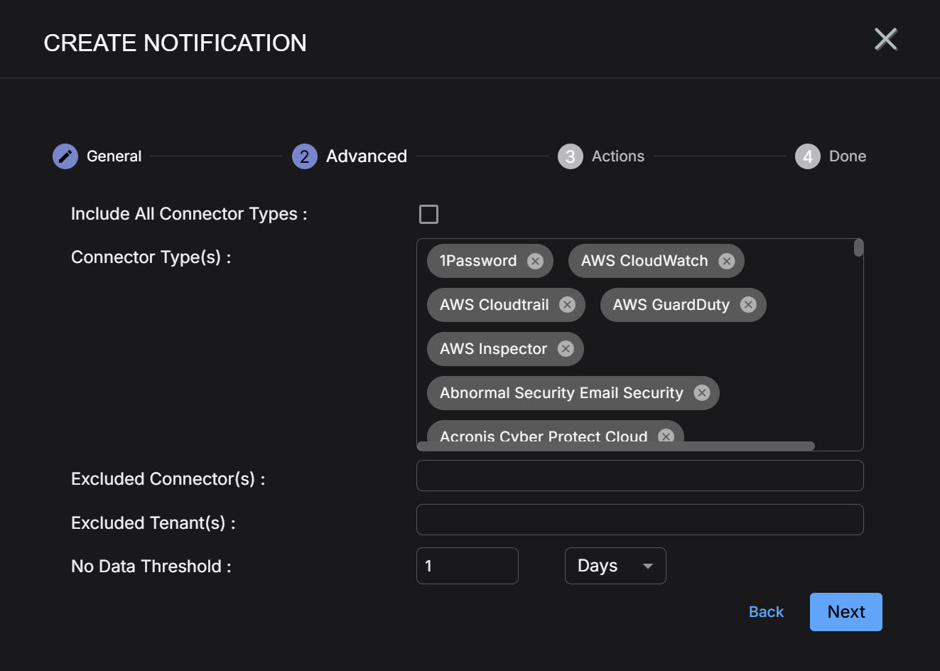 Connector Monitoring – Get notifications when specified connectors haven't sent data over a given time interval so you can address issues in real time.