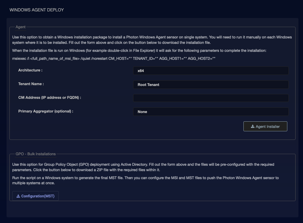 Download a 5.2.0+ Windows Server Sensor from the Stellar Cyber Platform and install it temporarily on a host separate from the Server Sensor whose settings you want to reconfigure.