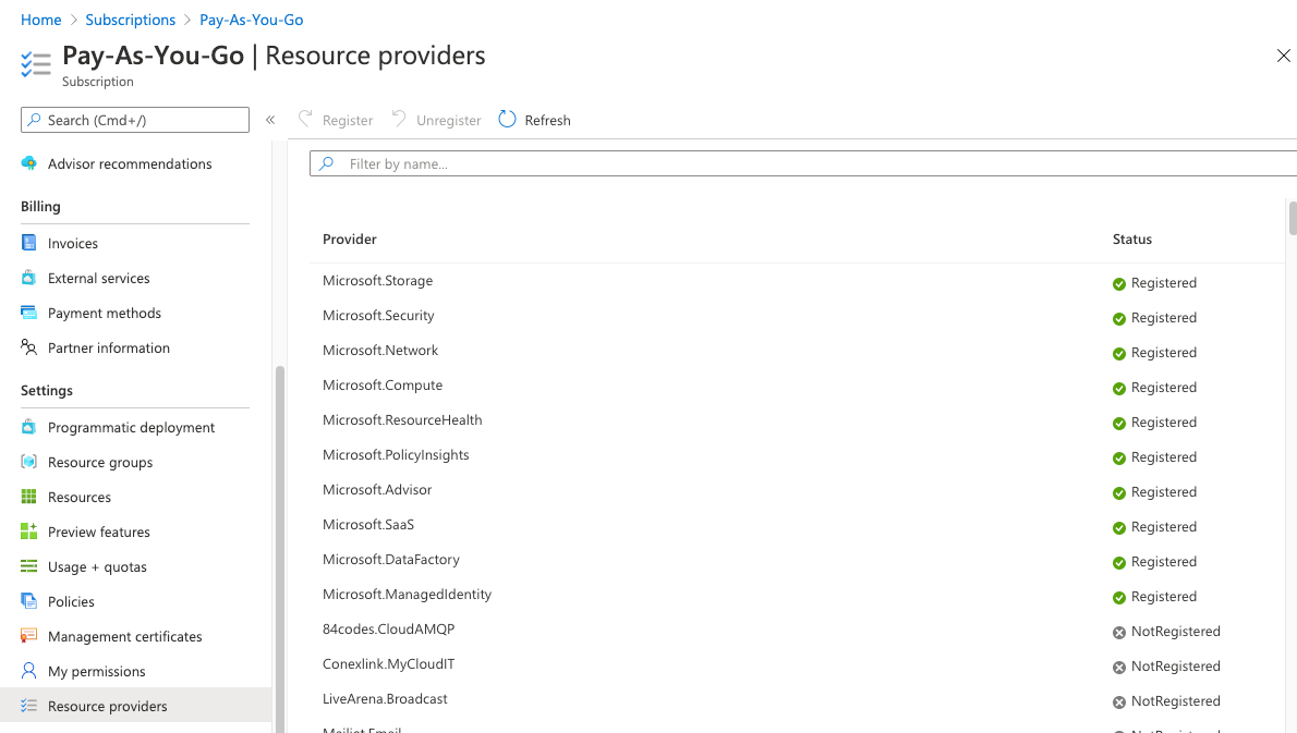 The Resource providers page appears.