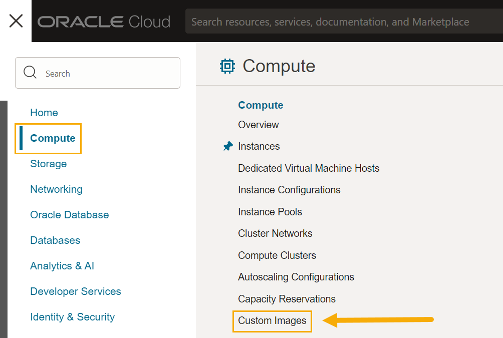 Click the main menu icon at the top left of the Oracle Cloud Console.