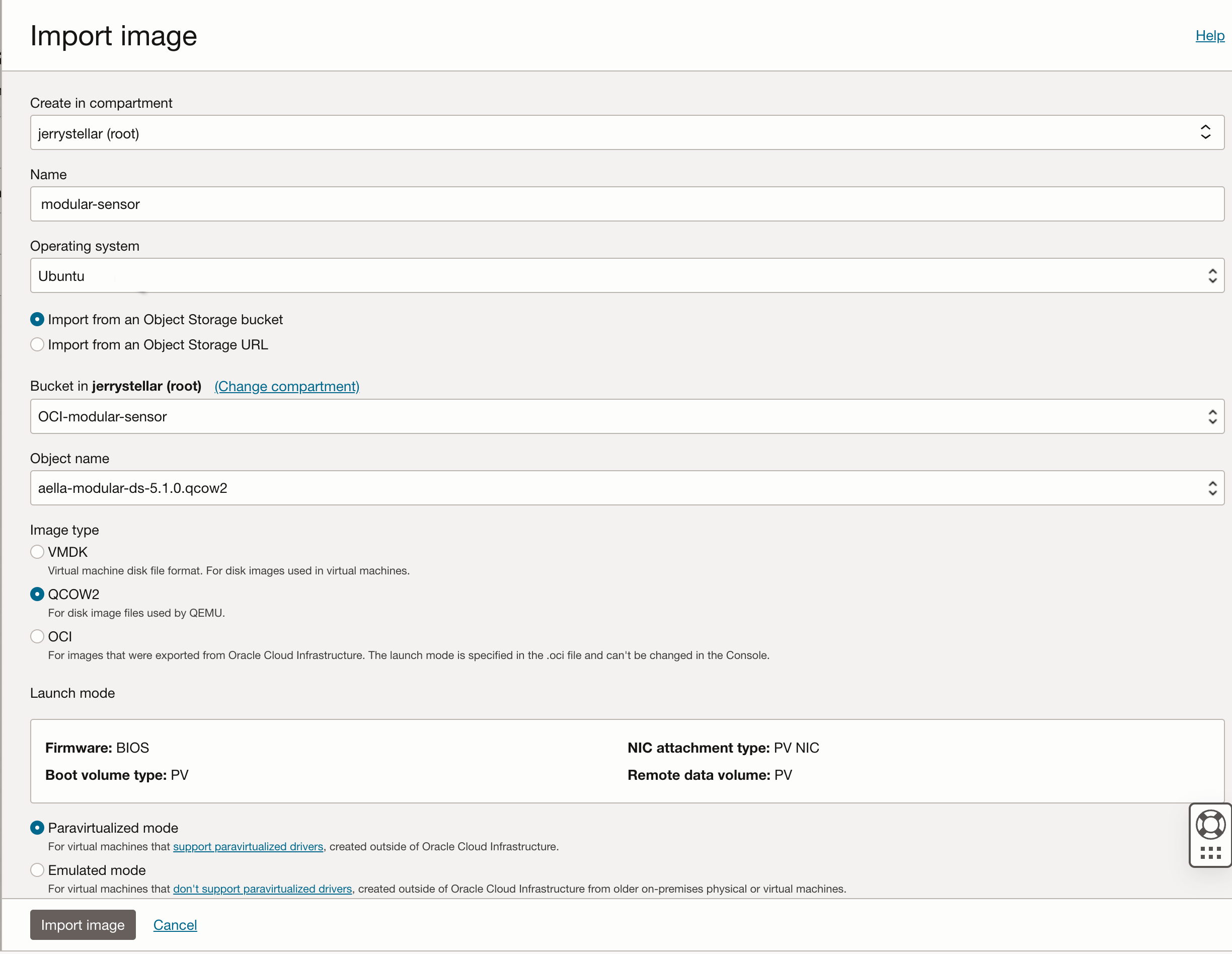 Use the Object name field to select the aella-modular-ds-5.x.x.qcow2 image.