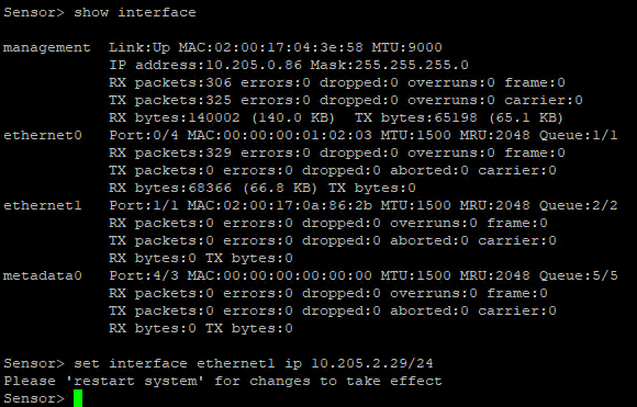 Sensor > set interface ethernet1 ip <ip address assigned by OCI>For example:
