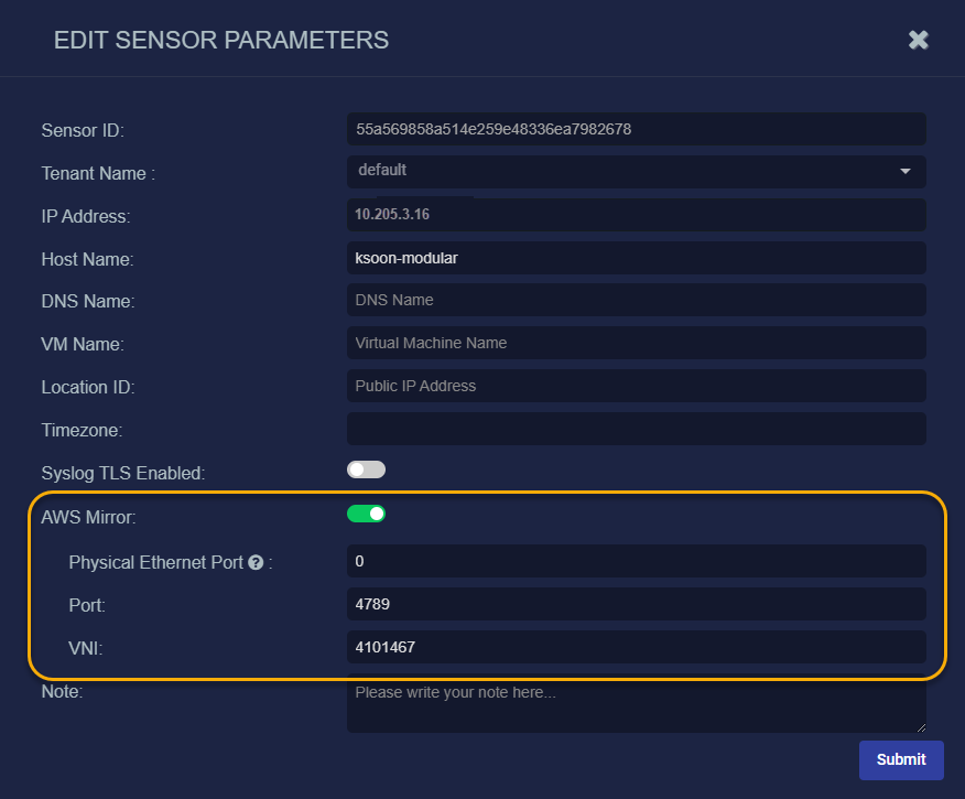 Although the feature is called AWS Mirror, it can be used to enable VXLAN parsing on a sensor interface regardless of the actual source.