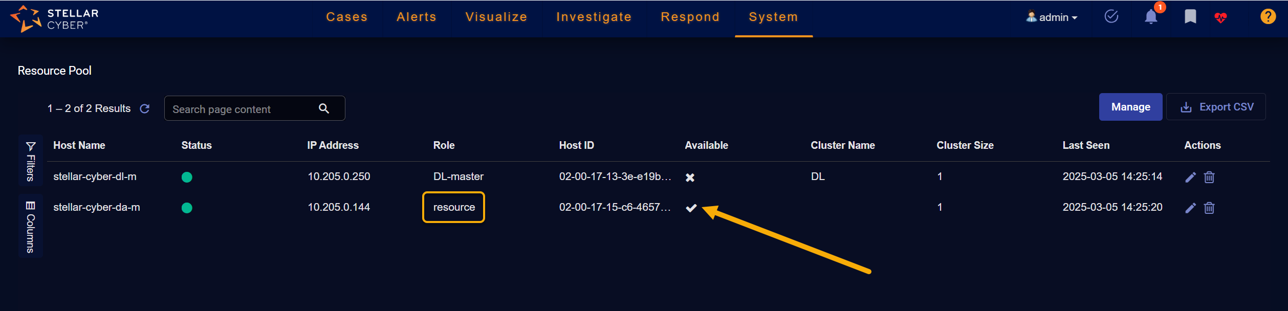 Use the following procedure to convert the DA-m VM's role from resource to DA-Master in the Stellar Cyber user interface: