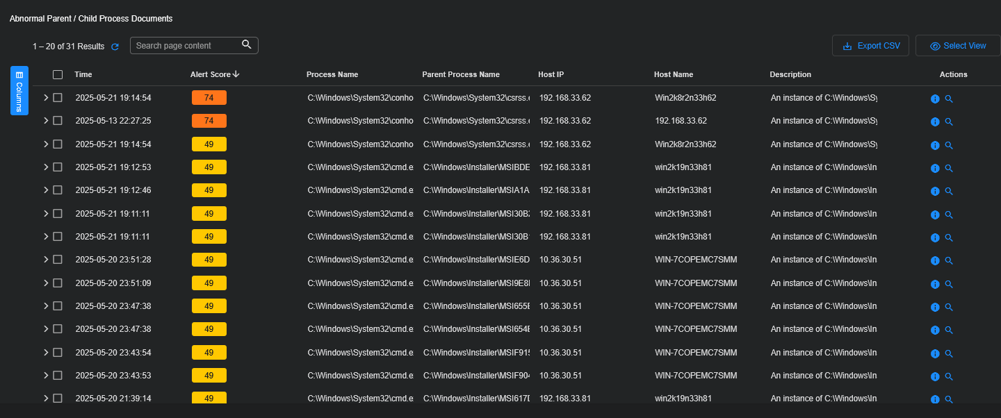 Alert Detail Table – The bottom of each Alert Details page provides a data table listing the different instances of this alert type.