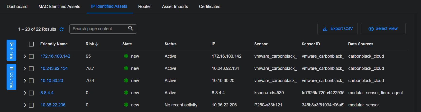 To see the asset identified by their IP addresses, click the IP Identified Assets tab.